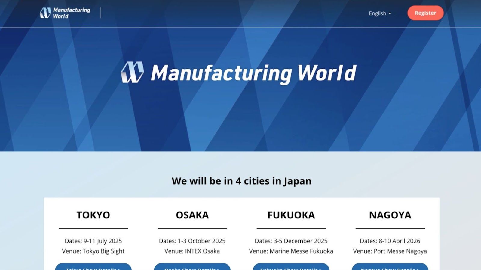 - 10 specialized shows catering to different manufacturing needs, from CAD/CAE and IoT platforms to factory equipment and measuring instruments.