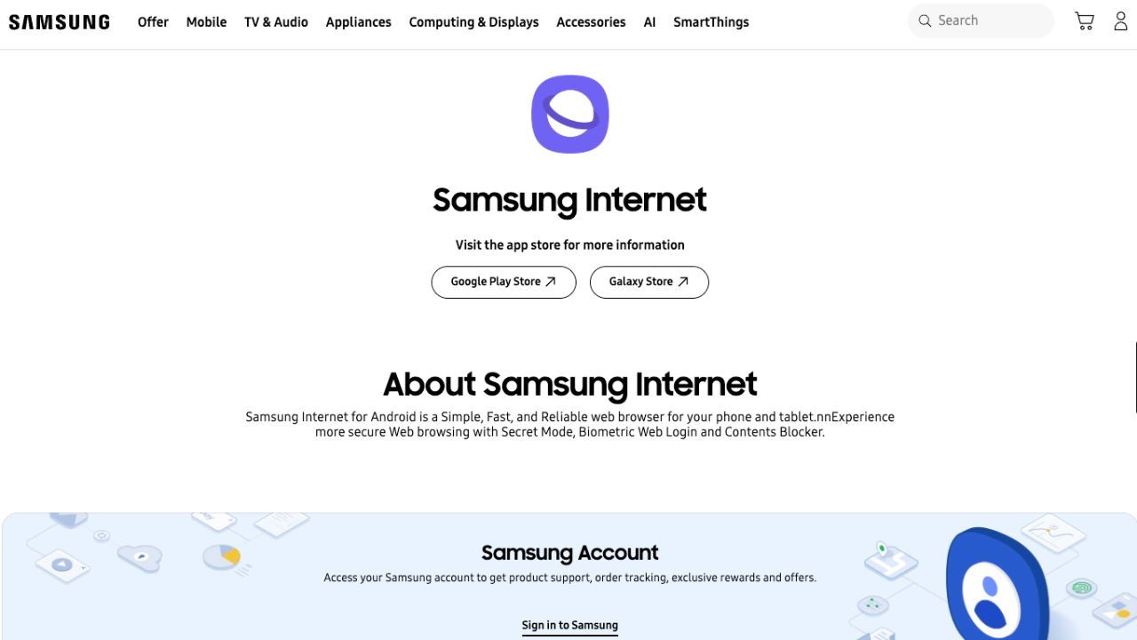 Source: Samsung Internet Homepage