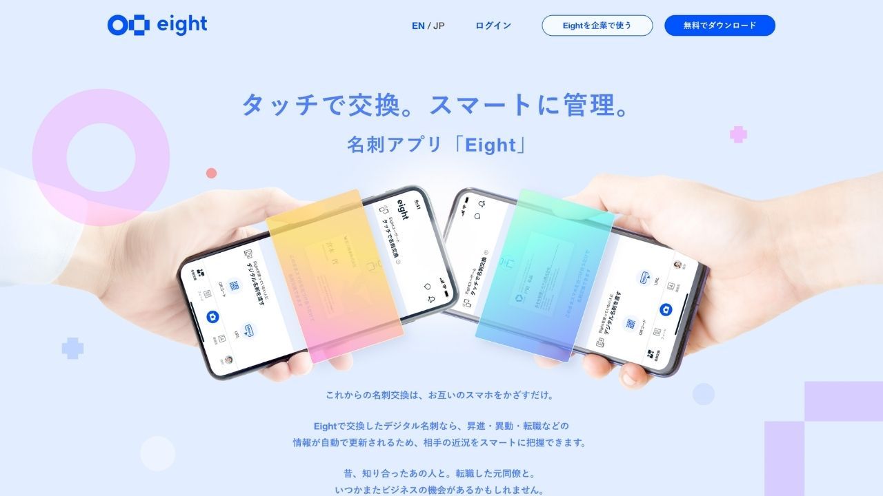 Eight, a popular business networking app with approximately 3.5 million users, is renowned for its innovative approach to business card management. Initially launched as a tool for organizing physical cards, it has evolved into a comprehensive digital solution. Users can now exchange business cards via touch-based interactions between smartphones, eliminating the challenges of managing physical cards—such as clutter, misplacement, or running out unexpectedly.