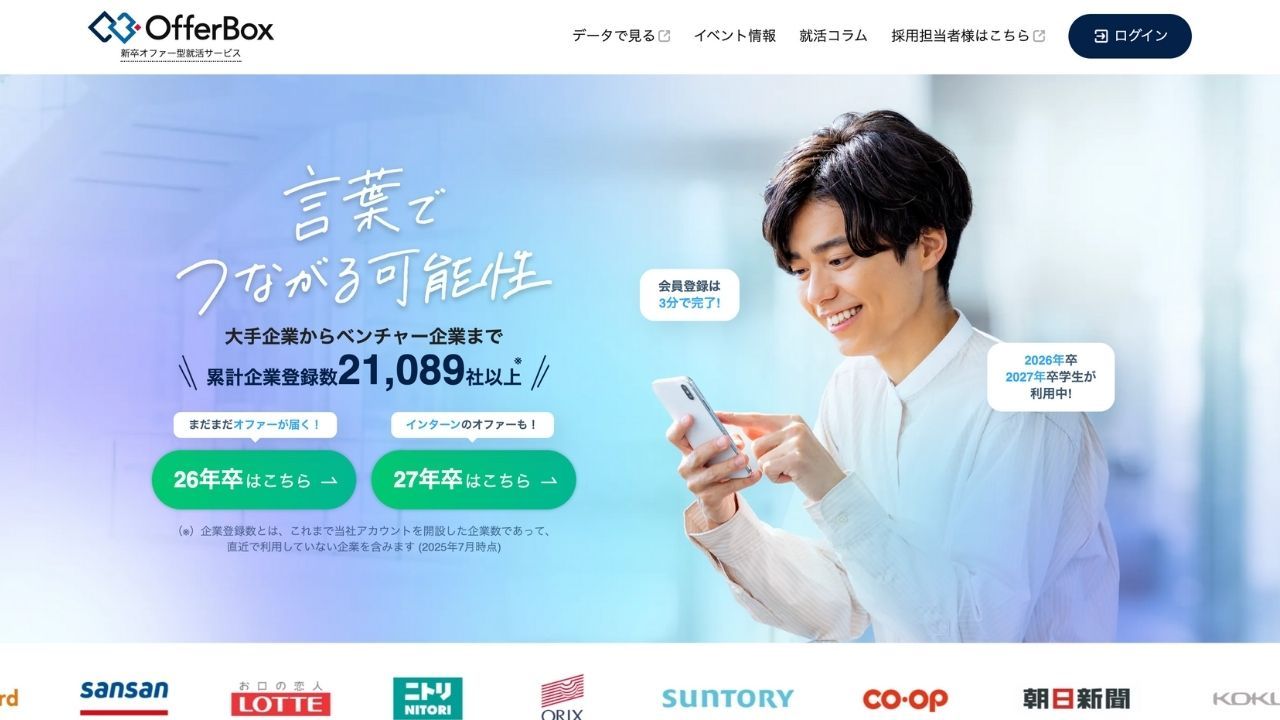 The platform is home to many globally minded students, and partial English-language support is available, making it accessible to international employers. With detailed student profiles and aptitude data, companies can identify matches that align closely with their needs. OfferBox is particularly well-suited for foreign companies new to the Japanese market and looking to build connections with a diverse student base.